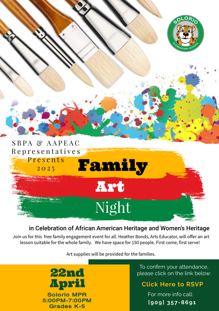 Please join us for Back to School Night to learn more about Solorio Elementary School and find out information about our exciting programs for students.